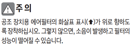 공조 장치용 에어필터의 화살표 표시가 위로 향하도 록 장착하십시오.