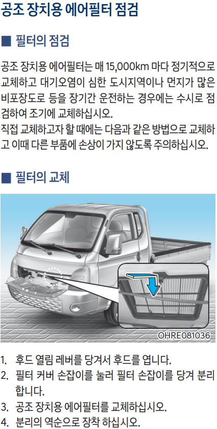 현대차 홈페이지 사용설명서 2022 포터II Electric 매뉴얼에서 발췌한 내용입니다.