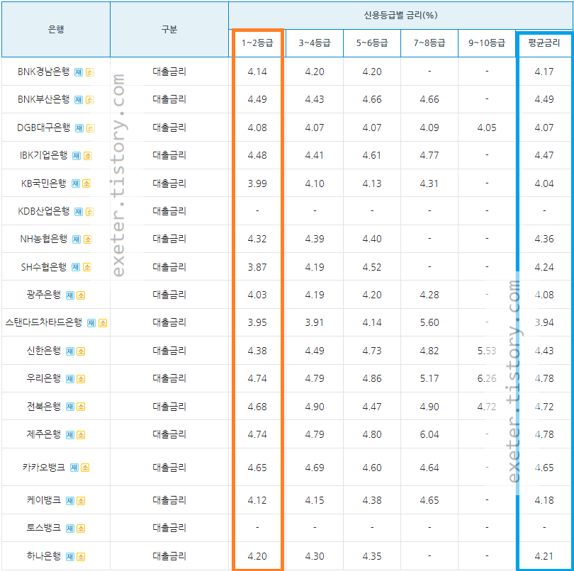 본 게시글은 신용등급에 따른 시중은행(1 금융권) 주택담보대출 금리 비교입니다.