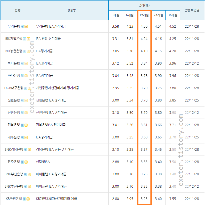 아래 ISA 예금 금리는 모두 2022년 12월 12일 조회 기준 입니다.