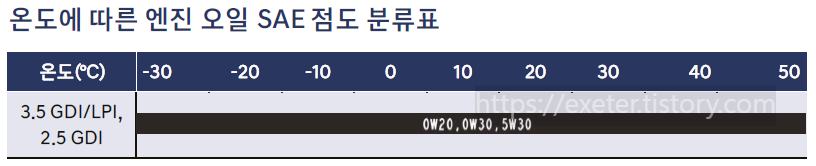 엔진오일 점도 분류표
