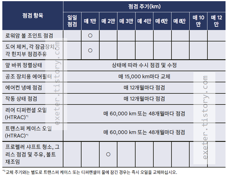 - 자동변속기 오일: 무점검·무교체