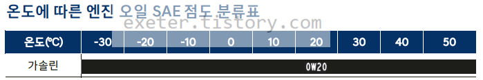 최근 발표되는 현대/기아 신차의 경우 최신 규격인 API SP/GF-6 (가솔린) 엔진오일을 추천하고 있습니다.