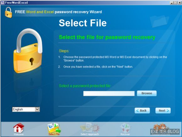 아래 스크린샷에서 'Select a passsword protected file:' 에서 [Browse] 버튼을 클릭하여 파일을 선택할 수 있습니다.