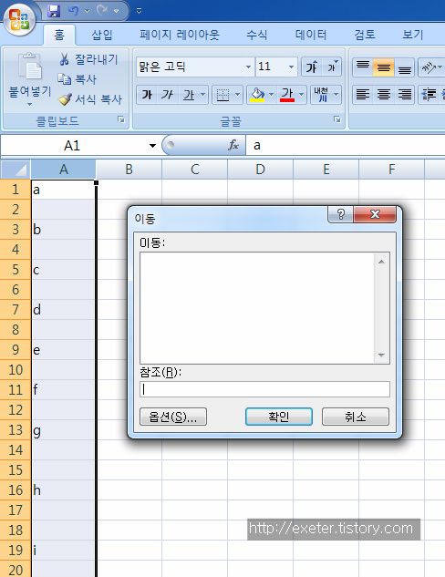 4. 옵션창에서 '빈 셀'을 선택. 확인 선택.