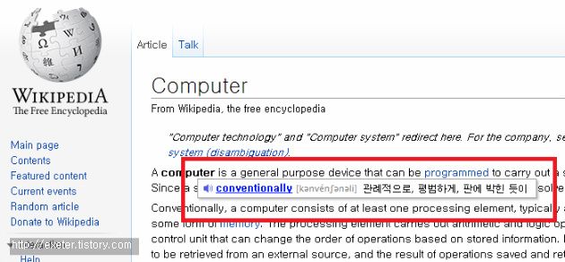 평소에 웹서핑을 할때는 구글 크롬을 자주 사용하는데, 가끔 영어로 작성되어있는 글을 읽을때면 모르는 단어가 너무 많아서(?) 영어 단어 뜻 찾느라 시간이 많이 소비되기도 하는데, 다음(Daum)에서 무료로 배포하는 꼬마사전을 사용하면, 데스크탑 PC에서 영어 문서를 읽을때 상당히 편리합니다.