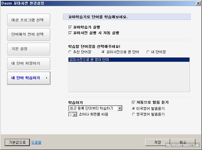 3) 내 단어 학습하기 - 꼬마학습기 기능으로 바탕화면 일부분에 팝업형태로 창을 띄워서 해석을 보여주고 발음을 들려줍니다