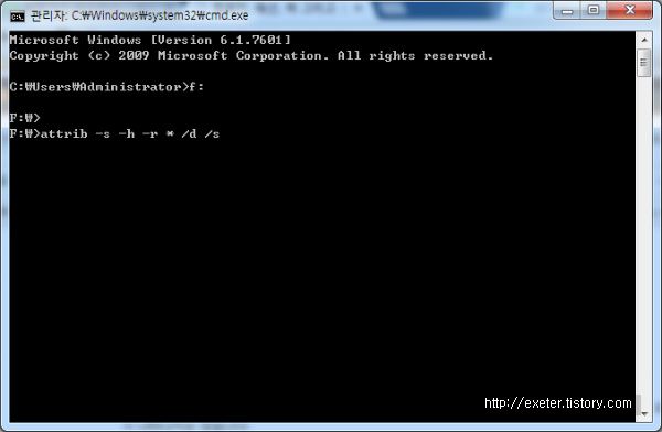 2. USB장치에 숨겨진 파일, 폴더들의 속성을 변경하여 복원한다