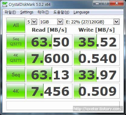다른 사용기에서는 100 MB/s 이상의 수치가 나오는데, 제가 구매 제품에 문제가 있는 것인지, 아니면 사용했던 데스크탑에 USB 관련해서 트러블이 있는 것인지 모르겠습니다. 인터넷용 PC라서 스펙은 좋지 않습니다.