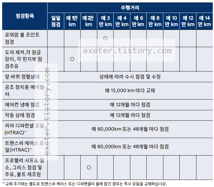 - 리어 디퍼런셜 오일 (HTRAC)*1: 매 60,000km 또는 48개월 마다 점검